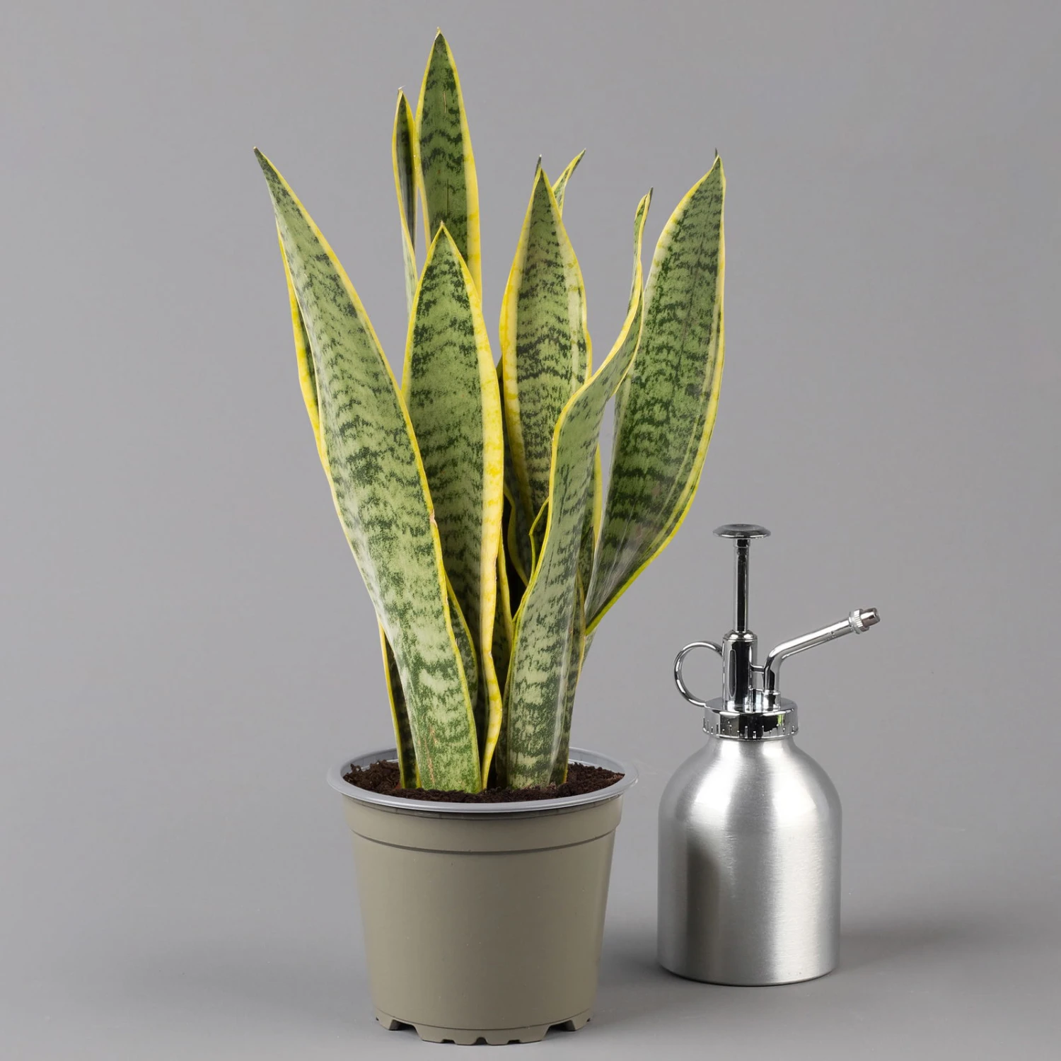 Der Bogenhanf (Sansevieria trifasciata ‚Laurentii‘) gilt als eine der robustesten und pflegeleichtesten Zimmerpflanzen überhaupt und ist auch unter den Namen ‚Sansevierie‘ oder ‚Schwiegermutterzunge‘ bekannt. Charakteristisch sind die riemenartig festen, fleischigen Blätter, deren Blattränder beidseitig gelbe Querstreifen aufweisen. Die grundständigen Blätter entspringen einem Rhizom und enden aufrecht in einer Spitze. Bei guter Pflege kann der Bogenhanf über einen Meter hoch werden.