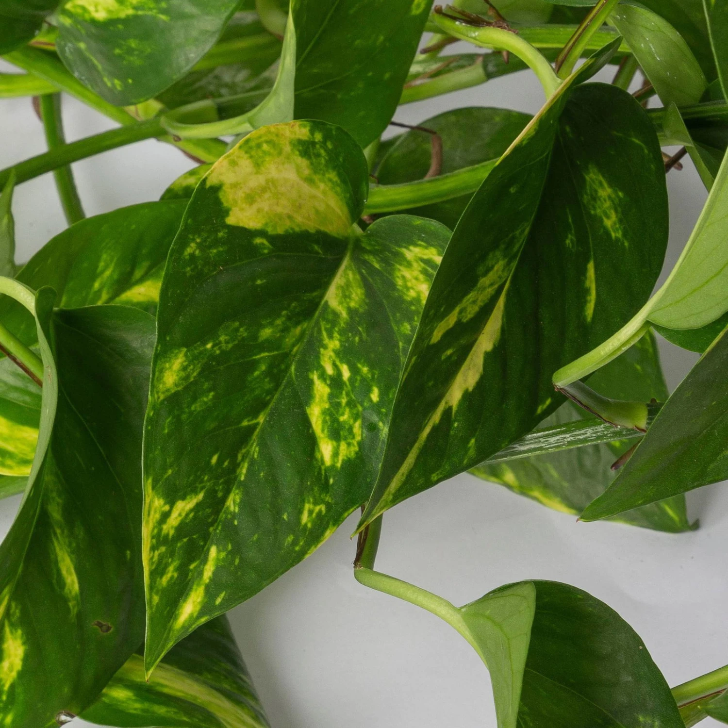 Die Efeutute (Epipremnum pinnatum ‚Aureum‘) mit gelbgrünen Blättern stammt ursprünglich aus dem Dschungel Südostasiens und lässt sich bei der Innenraumbegrünung vielfach dekorativ in Szene setzen. Sie können diese rankende Zimmerpflanze nicht nur in Ampelkultur pflegen, sondern dem tropischen Gewächs auch eine Rankhilfe anbieten. Bei günstigen Bedingungen erreichen die Triebe stattliche Längen bis zu 200 cm. Die Efeutute ist die richtige Zierpflanze für halbschattige und sogar schattige Lagen. Je heller der Standort, desto markanter fällt die Blattzeichnung aus. Die pflegeleichte Pflanze fühlt sich in einem gleichmäßig feuchten, durchlässigen Substrat wohl. Dabei zählt die Efeutute zu den beliebtesten Raumklimapflanzen und entzieht der Luft solche Schadstoffe wie Benzol und Formaldehyd.