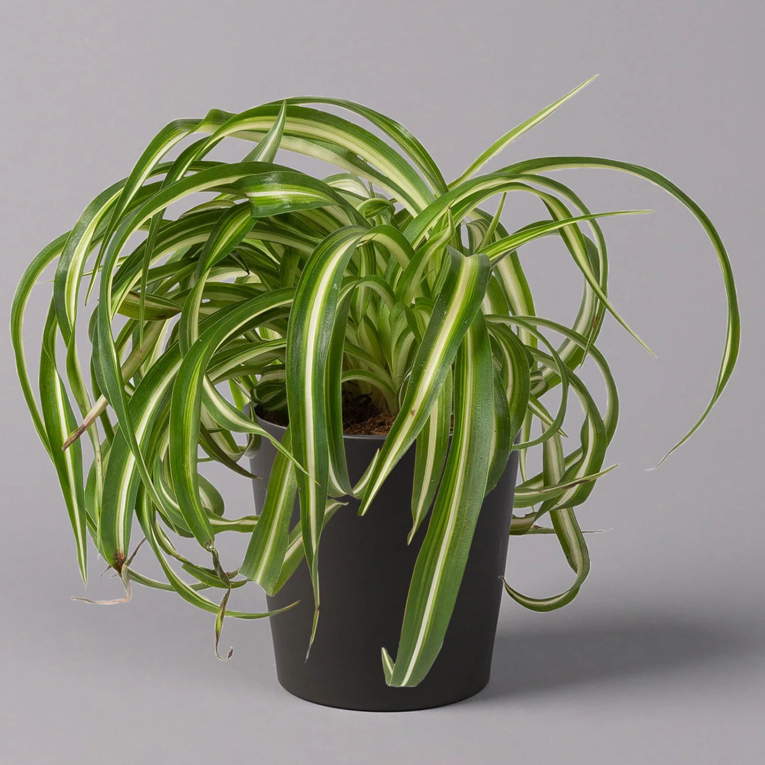 Die Grünlilie (Chlorophytum comosum) zählt zu den Klassikern unter den Zimmerpflanzen und war die Trendpflanze der 70er-Jahre. Seit geraumer Zeit feiert die Grünlilie als absolut pflegeleichte und robuste Grünpflanze ein Comeback und schmückt Wohn- und Badezimmer mit ihrem Retro-Charme. Charakteristisch sind die länglich-lanzettlichen Blätter, die je nach Sorte gelb bis grün gestreift sind. Die Blätter entwickeln sich überhängend aus einer Rosette heraus und formen einen dichten Blattschopf. Grünlilien erreichen bei guter Pflege eine Höhe von bis zu 40 cm.