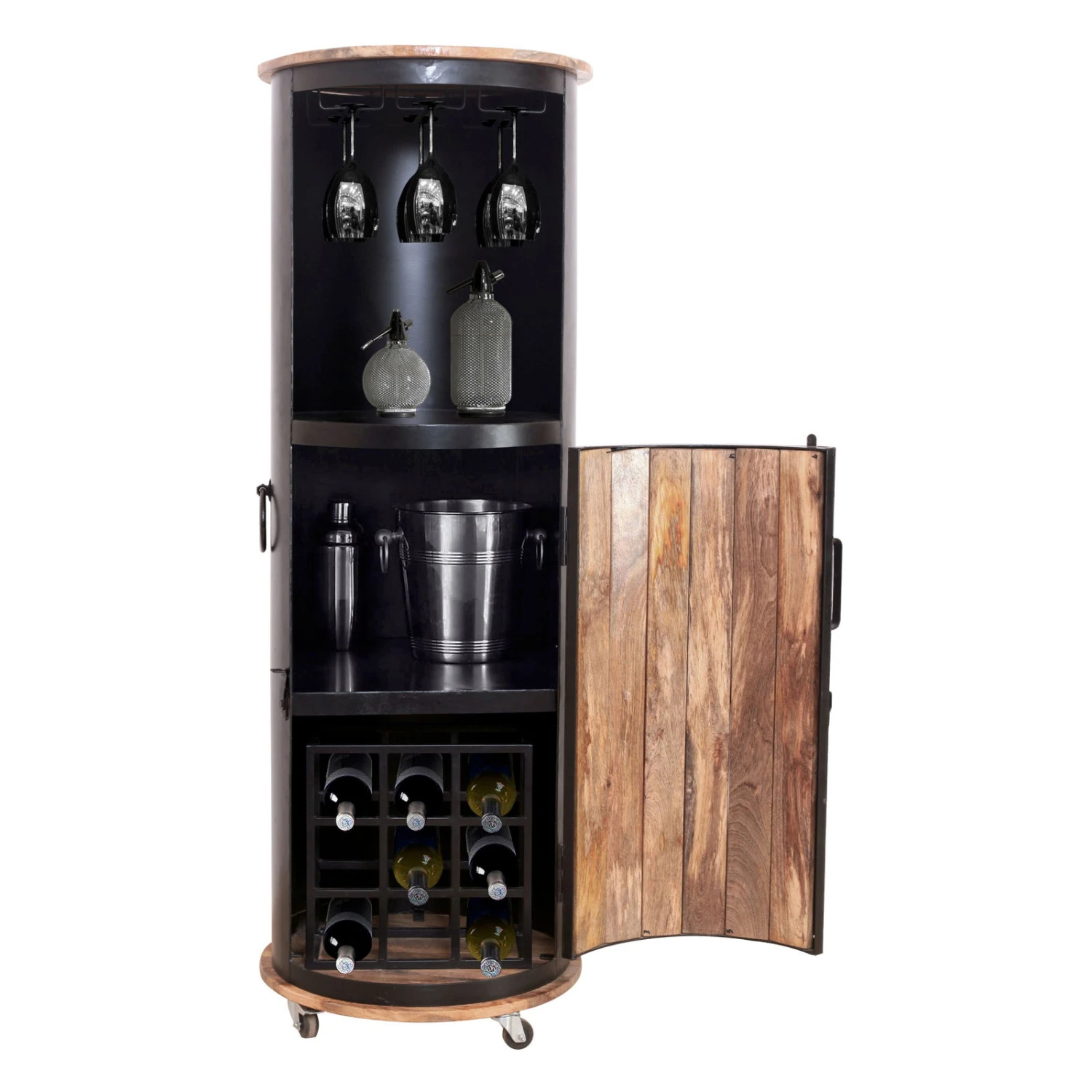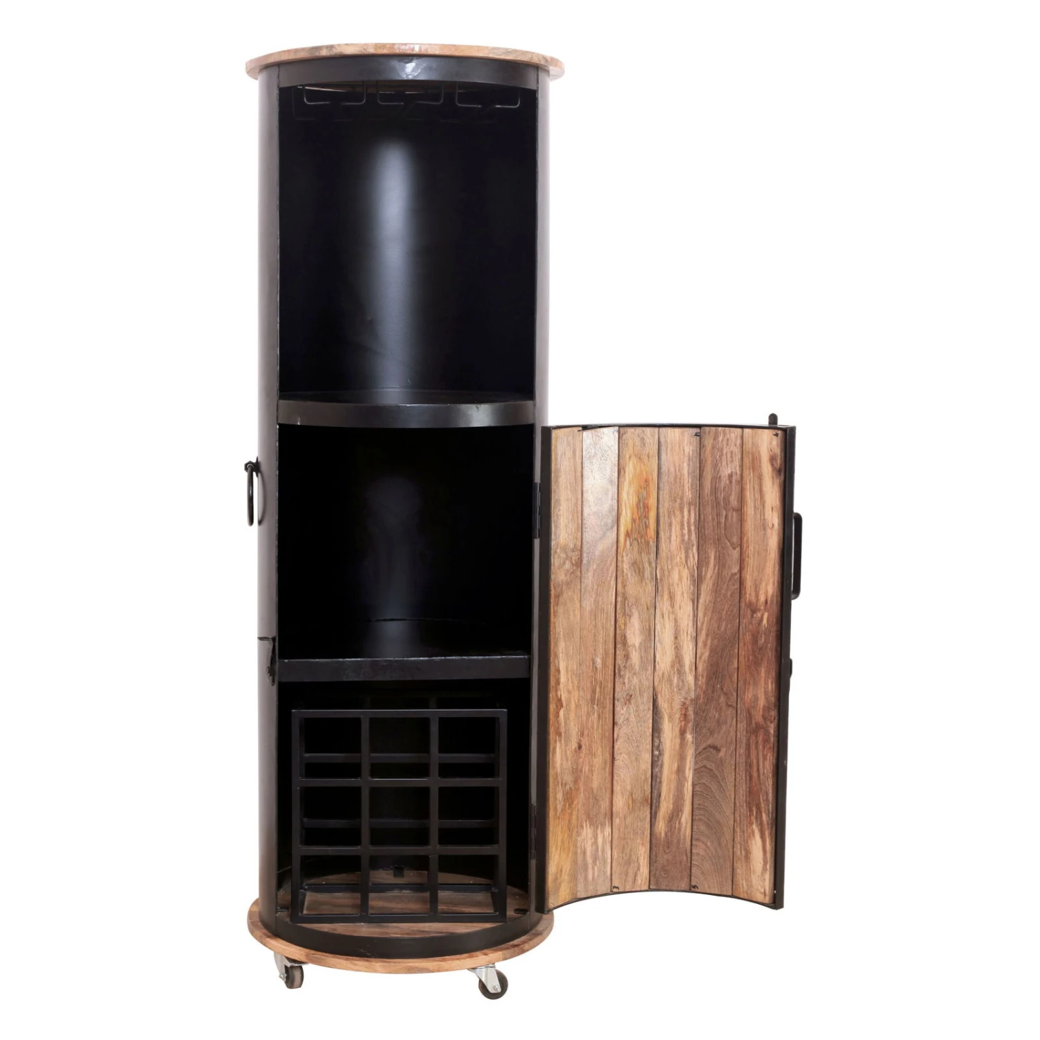 IRON Bar Auf Rollen Für 9 Flaschen, Mangoholz, Ca. 57 X 57 X H 165 Cm