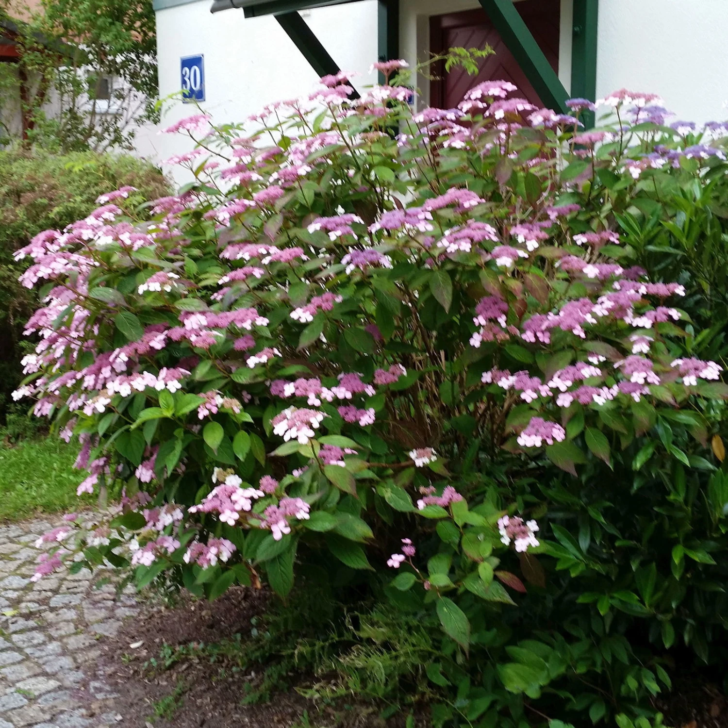 Die robusten Berghortensien bilden viele kleine bis mittelgroße Blütendolden aus, die gern von zahlreichen Insekten besucht werden.