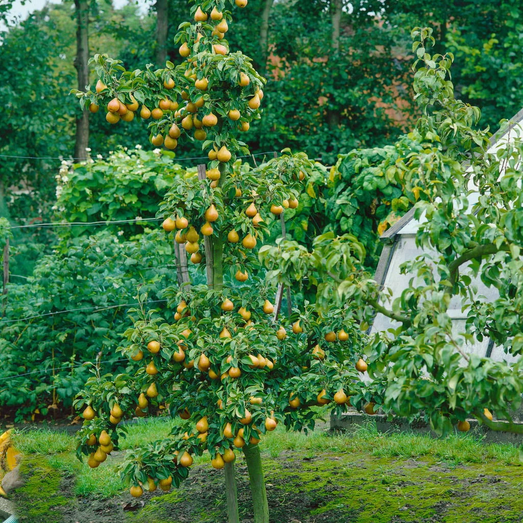 Durch den schlank aufrechten Wuchs ist die Säulenbirne gut für kleine Gärten oder Fruchthecken geeignet. Wer die Säulenform beibehalten möchte, sollte Seitentriebe regelmäßig durch Schnitt einkürzen.