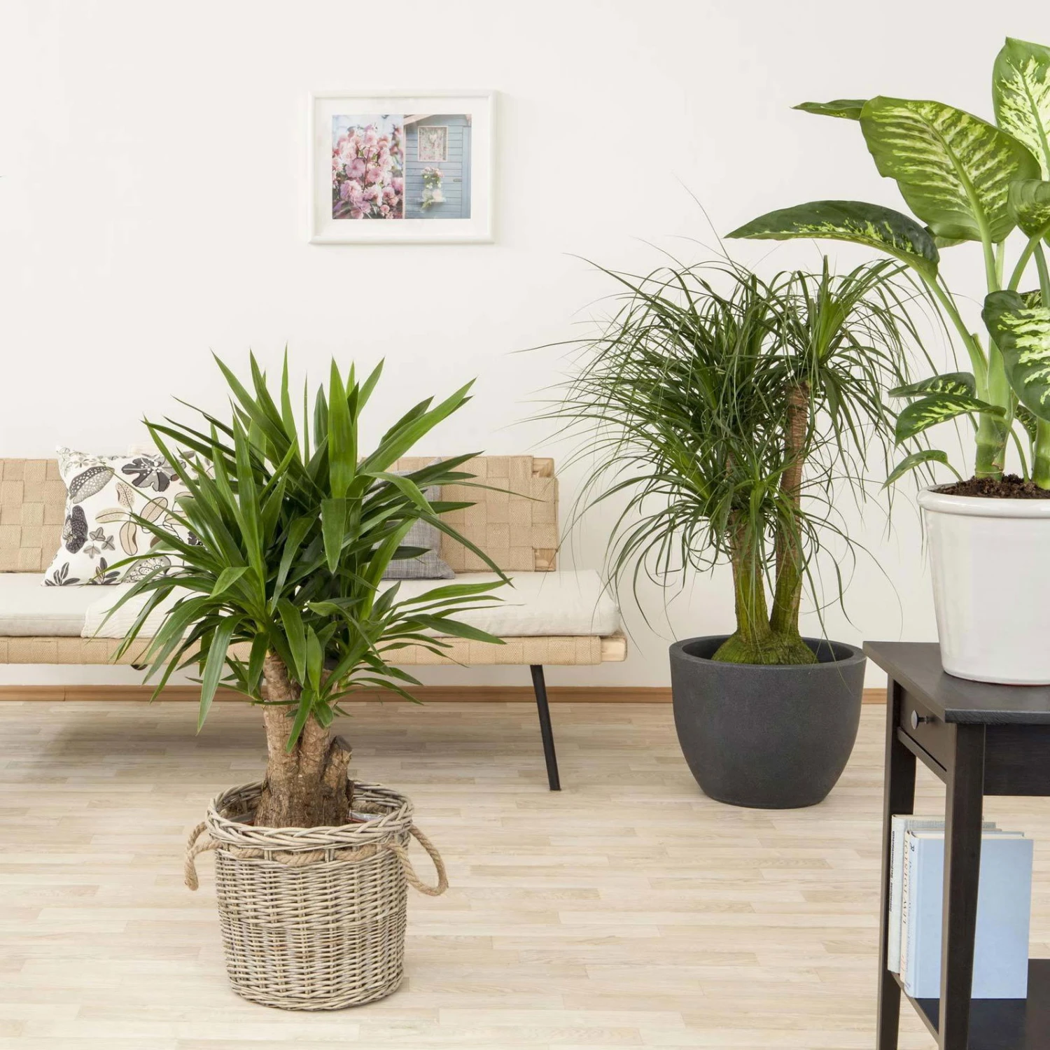 Verschönern Sie Ihr Heim oder Büro mit einer trendigen Zimmerpflanze – die Palmlilie (Yucca elephantipes) gehört zu den exotischen Zierpflanzen, die jeder besitzen sollte. Die pflegeleichte Yucca-Palme aus der mexikanischen Region ist dank ihrer hellgrünen und schlanken Blätter, die spitz nach oben verlaufen, ein optischer Blickfang auf jeder Fensterbank. Bei Pflanzen-Kölle können Sie die angesagte Palmlilie kaufen und in Ihrem Wohnraum oder am Arbeitsplatz als hübsche Deko platzieren. Damit die Yucca Elephantipes optimal wächst und gedeiht, sollten Sie die Grünpflanze an einem hellen und sonnigen Standort aufstellen und nur ab und an mit Wasser gießen. Auf der Fensterbank oder auf einem stylischen Pflanzentisch von Pflanzen-Kölle wirkt die Palmlilie mit ihren Verzweigungen besonders schön und zieht magisch alle Blicke auf sich. Ob als klassische Zimmerpflanze für Zuhause, als Hingucker im Treppenhaus oder als Grünpflanze für Geschäftsräume – die Yucca-Palme sorgt dank ihres schönen Wuchses für eine angenehme Atmosphäre.