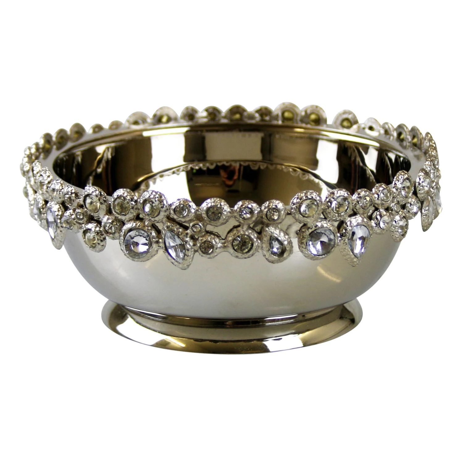 Die formschöne Schale in der Farbe Silber mit dekorativen Glassteinen besticht durch die zeitlose Designlösung und detailreiche Verarbeitung. Nutzen Sie je nach Wunsch die Schale als eine dekorative Ablage oder für saisonale Kompositionen. Das Wohnaccessoire eignet sich nur für die Verwendung im Indoorbereich.