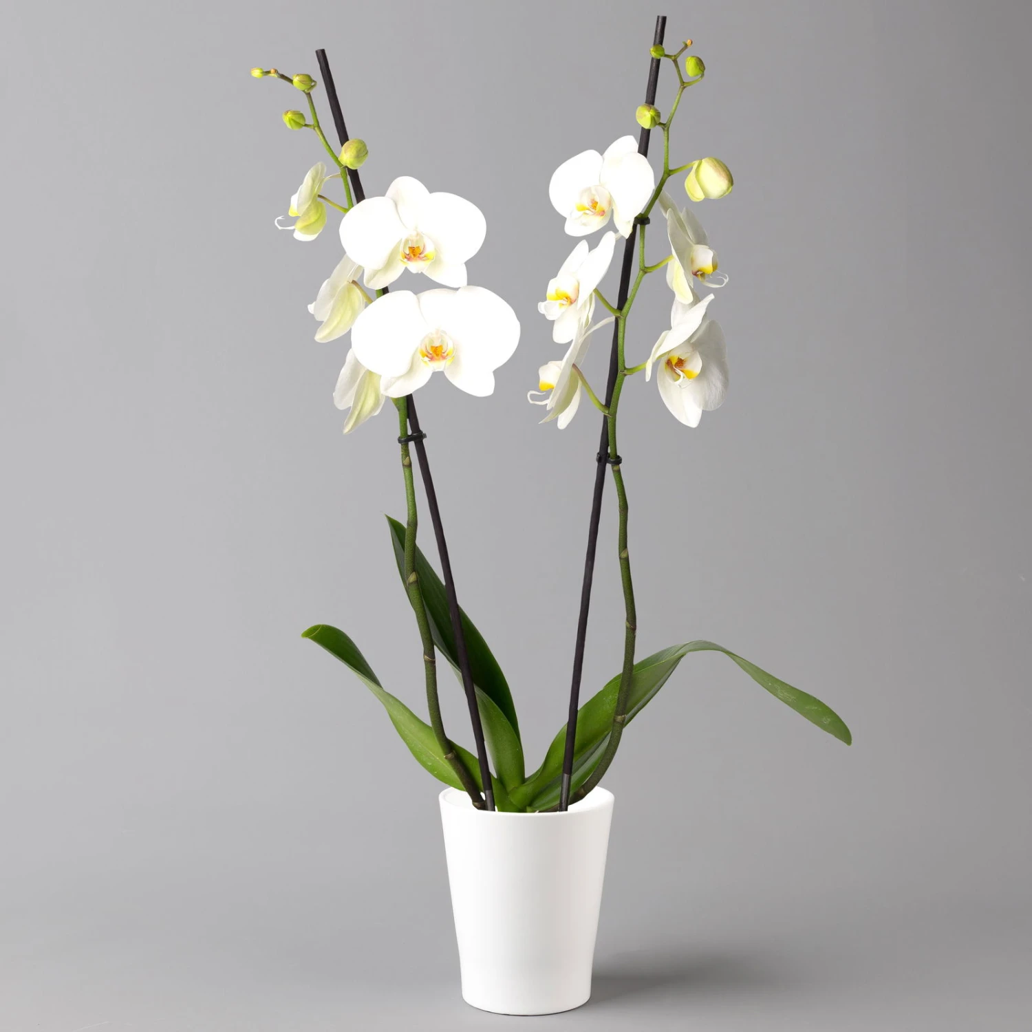 Schmetterlingsorchidee, Inkl. Keramiktopf, Weiß, Topf-Ø 12cm, Höhe Ca. 60 Cm