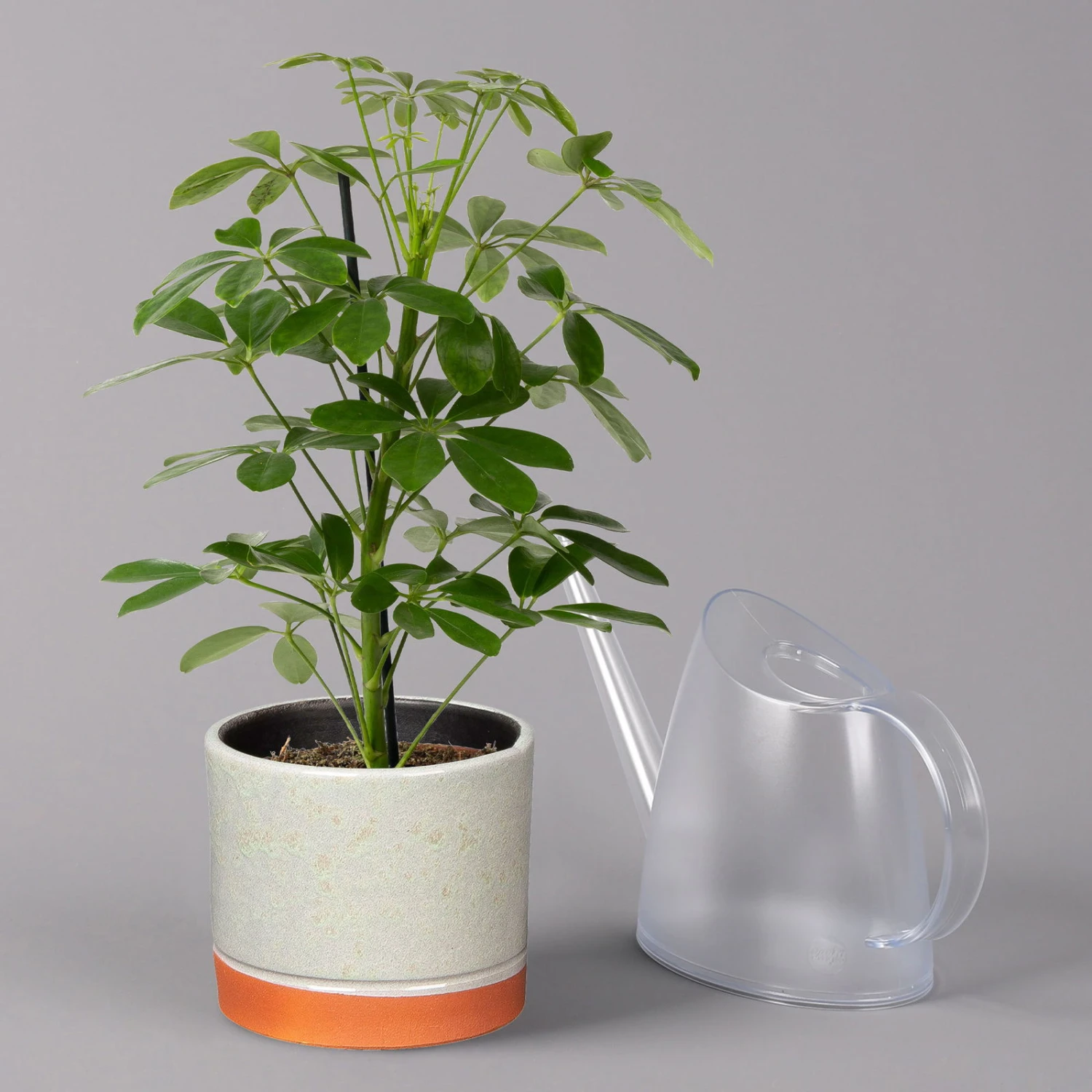Die Strahlenaralie (Schefflera arboricola) zählt zu den beliebtesten Büropflanzen, da sie sehr robust und besonders schnellwüchsig ist. Die ursprünglich aus Taiwan stammende Tropenpflanze besticht mit den typisch strahlenförmig angeordneten Blättern, die kräftig grün und glänzend sind. Die Pflanze wächst schlank aufrecht und kann bis zu 2 Meter hoch werden. Ab einer gewissen Höhe bietet sich ein Moosstab als zusätzliche Fixierung an, welcher der Pflanze als Stütze dient.