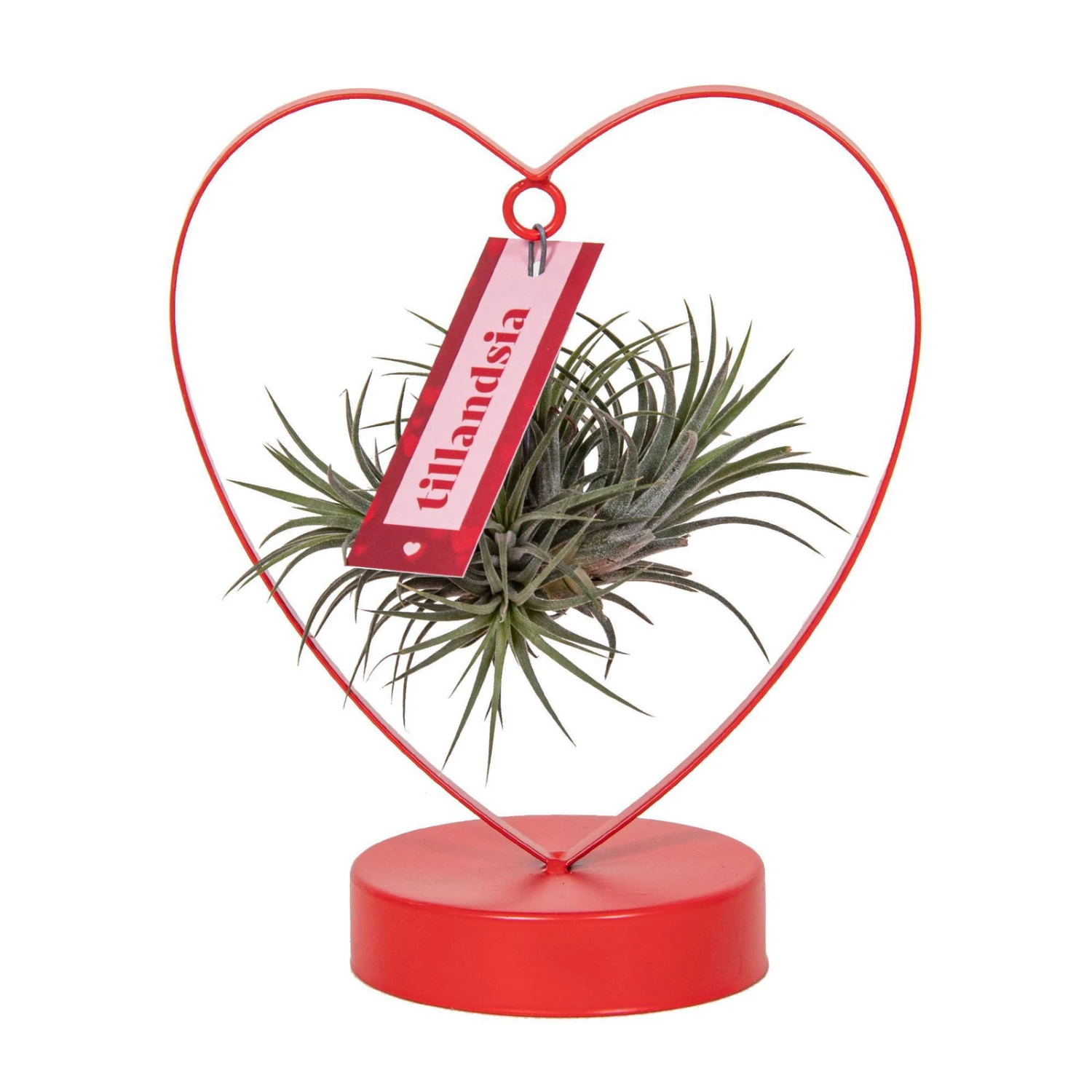 Diese Tillandise ist ein besonders außergewöhnlicher Blickfang für Ihre Wohnung: Die kugelförmige Pflanze mit den zauberhaft verdrehten Blättern scheint geradezu in dem modernen, minimalistischen Metallgestell zu schweben. Als besonderes Dekoelement auf Tischen, Fensterbänken oder Schränken kommt die aparte, eindrucksvolle Optik der Tillandsie voll zur Geltung und sichert Ihnen die Bewunderung Ihrer Gäste. Der Metallständer ist passend zum Valentinstag herzförmig und rot lackiert. Das Werkstück eignet sich so wunderbar als Geschenkidee für einen geliebten Menschen!