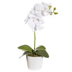 Kunstblume Mini-Orchidee Phalaenopsis Weiß, Im Keramiktopf, Ca. 43 Cm
